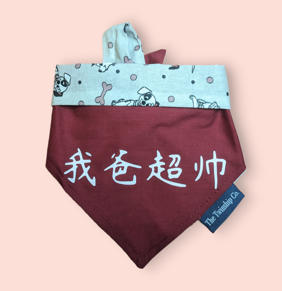 Reversible Pet Bandana: "我爸超帅" (Small)